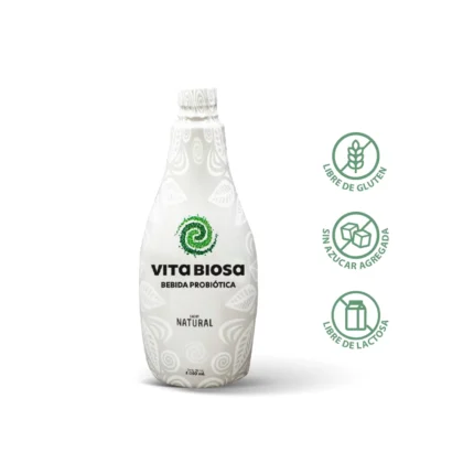 Vita Pro Kids Probiótico 100% Natural🌿 libre de azúcar, gluten y lactosa, es una bebida con fermentación suave sabor a Tutti Frutti, especialmente formulada para niños desde 0 a 12 años. Contiene una mezcla única de 8 cepas bacterianas beneficiosas y 19 hierbas aromáticas que pueden ayudar a mejorar la salud digestiva y fortalecer el sistema inmunológico de los niños. Contiene un mínimo de 50 billones de microorganismos probióticos por dosis de 30 ml (50*10^9 UFC – 5*10^10).